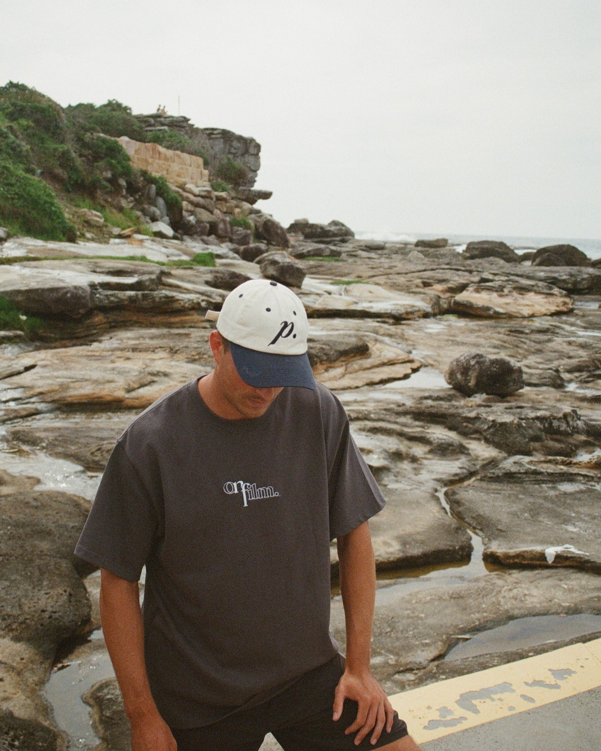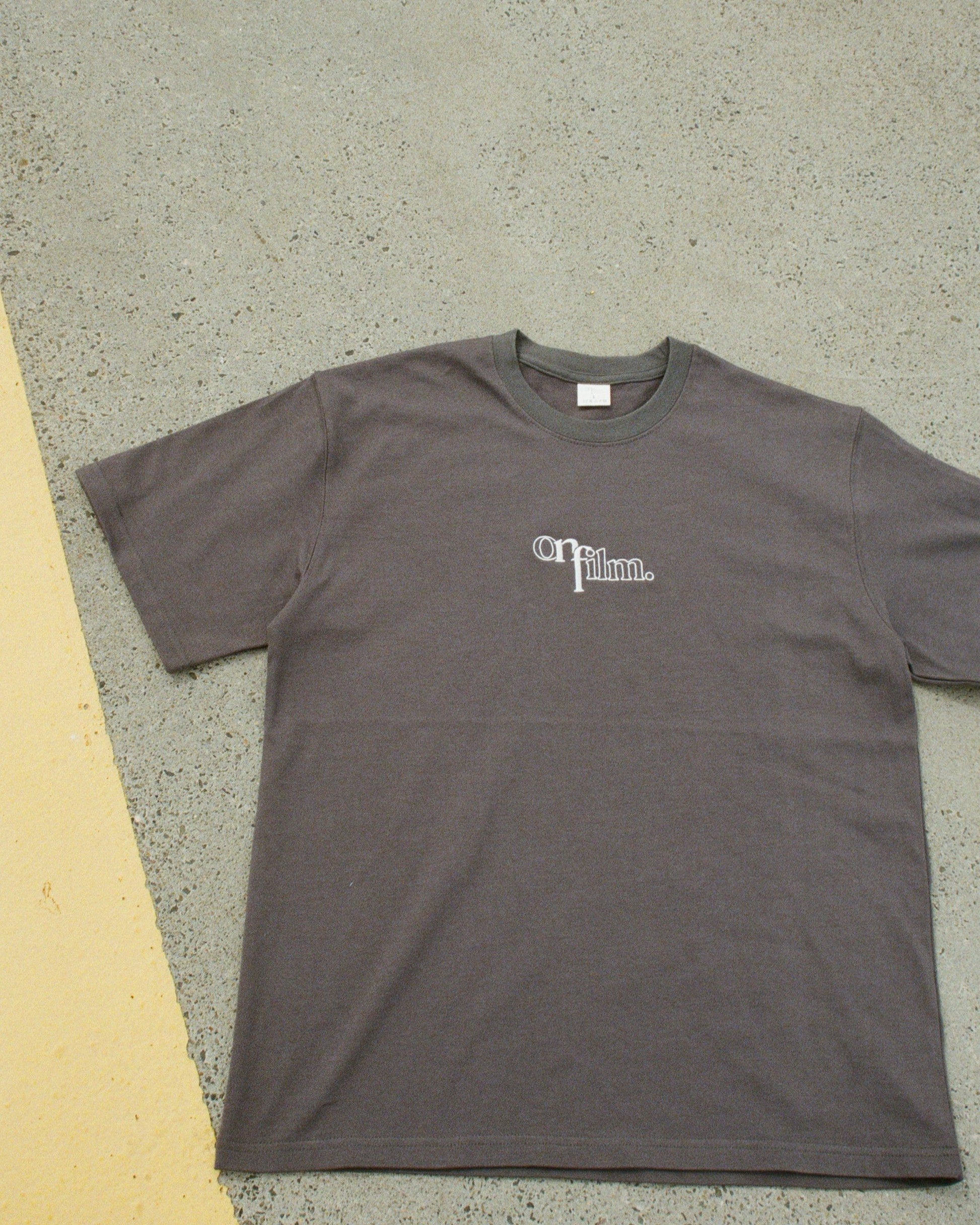 Charcoal colour cotton with white ‘On Film’ embroidered logo.